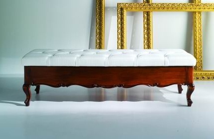 Bench Cadore from the Italian manufacturer Piermaria. The frame is made from solid wood, upholstery - cloth from a range of campaigns. Model on carved legs-Cabriole. The seat is decorated with stitch-Capito. A chic choice for interior in classic style. Colors: white, brown.