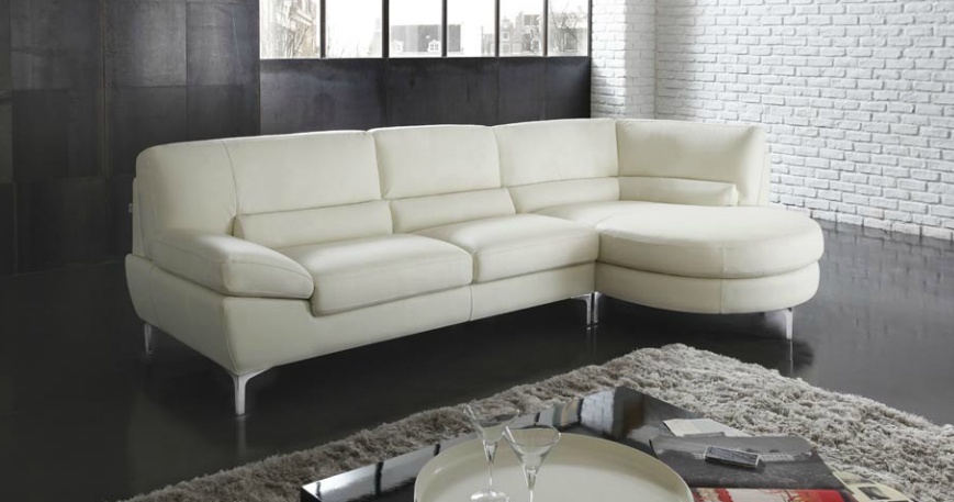 Giove corner sofa from Italian manufacturer Pibiemme, the collection of Linea Pelle. The frame is made of wood. Upholstered in leather from the company portfolio. The armrests are complemented with soft cushions. The legs are made of metal. Color scheme - white. The model is made in modern style.