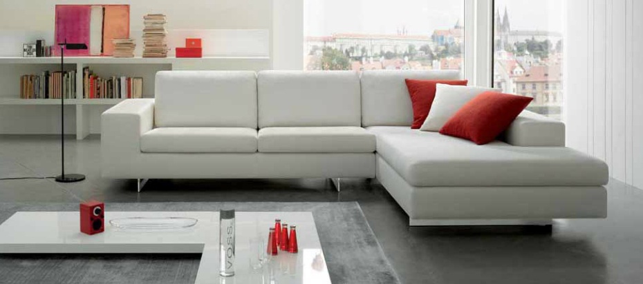 Sofa corner Led italnyaskih from the manufacturer Pibiemme, collection VIP Collection. The frame is made of drevesiny. Upholstered in leather from the company portfolio. Color scheme - white. Legs made of metal. Armrests - square. The model will perfectly complement the modern interior living room.