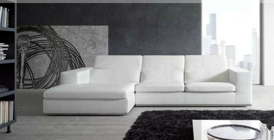Vancouver corner sofa from the manufacturer italnyaskih Pibiemme, collection VIP Collection. The frame is made of drevesiny. Upholstered in leather from the company portfolio. Color scheme - white. Legs made of metal. Armrests - square. Back transformed. The model is made in modern style.