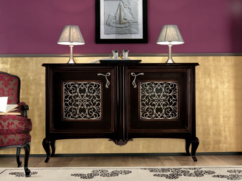 A Snack Bar Of Art. 157 from the Italian manufacturer Giorgiocasa. The frame is made from solid wood, inset with glass. Decorative hardware metal. Legs Cabriole. Perfect choice for classic style. Product color brown.