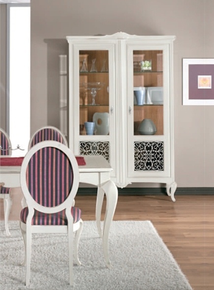 Showcase Art. 352 from the Italian manufacturer Giorgiocasa. The body is made of solid wood. Two flaps in glass are complemented by decorative inserts decorated with patterns. Fittings - metal. The model is intended for interior in classic style. Product color white.