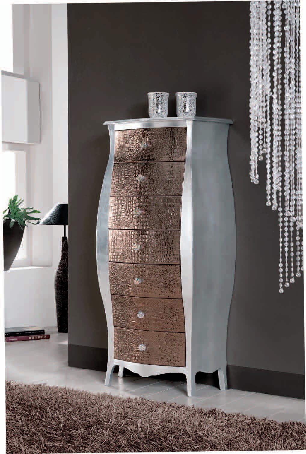 High chest of drawers from Italian manufacturer Sangiorigo. The model includes seven drawers. The Cabinet is made of solid wood. Finish - gloss lacquer and leather. Handle round shape made of metal.