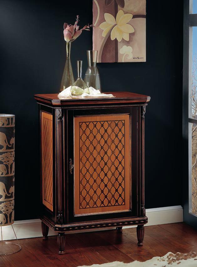 Bedside table from the Italian manufacturer Sangiorigo. Model with hinged door. Body and legs made of solid wood. The surface is treated with glossy varnish. The metal fittings. Is practical and compact.