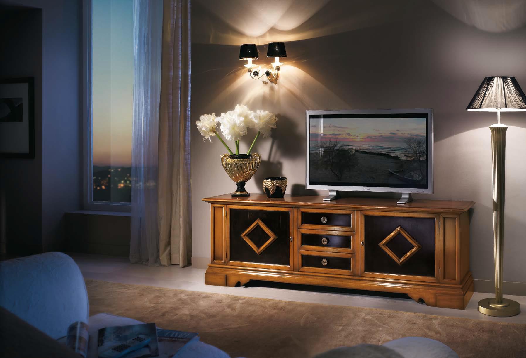Stand from Italian manufacturer Sangiorigo. Includes drawers and sections with hinged doors. Material - solid wood. Finish to be selected from a catalog company. Accessories metal. Decoration is the decorative carving handmade.