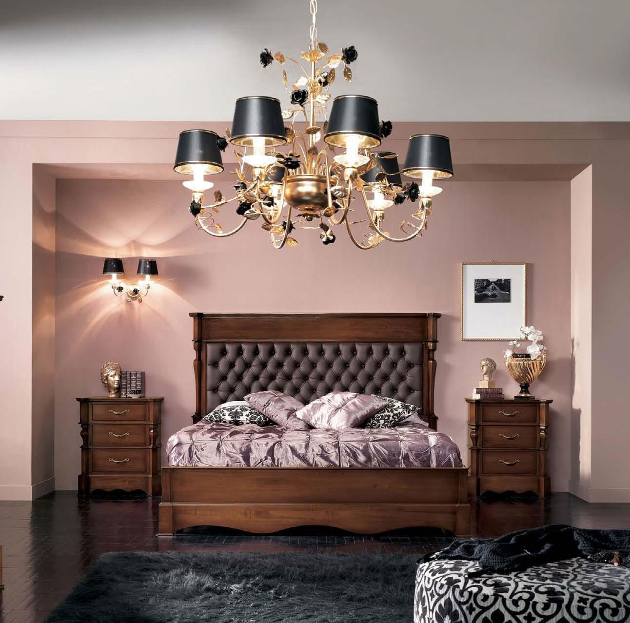 Double bed from Italian manufacturer Sangiorigo. Model with high headboard. The frame is made from solid wood. Upholstery textile. Color and texture based on company directory. Decoration are decorative buttons.