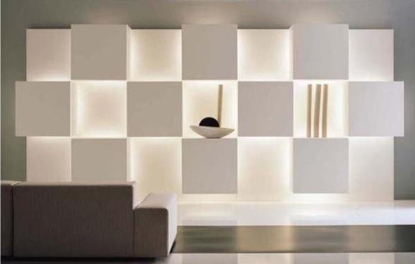 The shelf Life from the Italian manufacturer Acerbis. The model is made in a modern style. Housing and shelves made of solid wood. Offers a glossy finish or a matte varnish. Decoration is built in illumination.