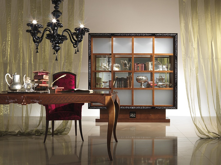 A display Cabinet made of solid wood inlaid with mother-of-pearl, Carpanelli