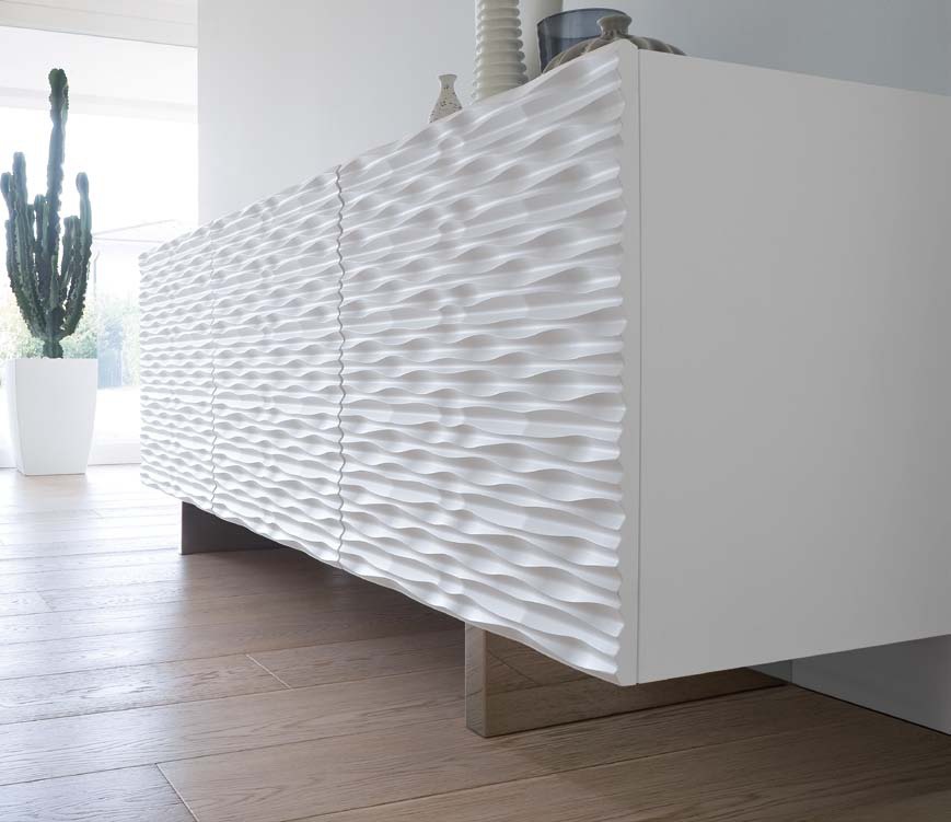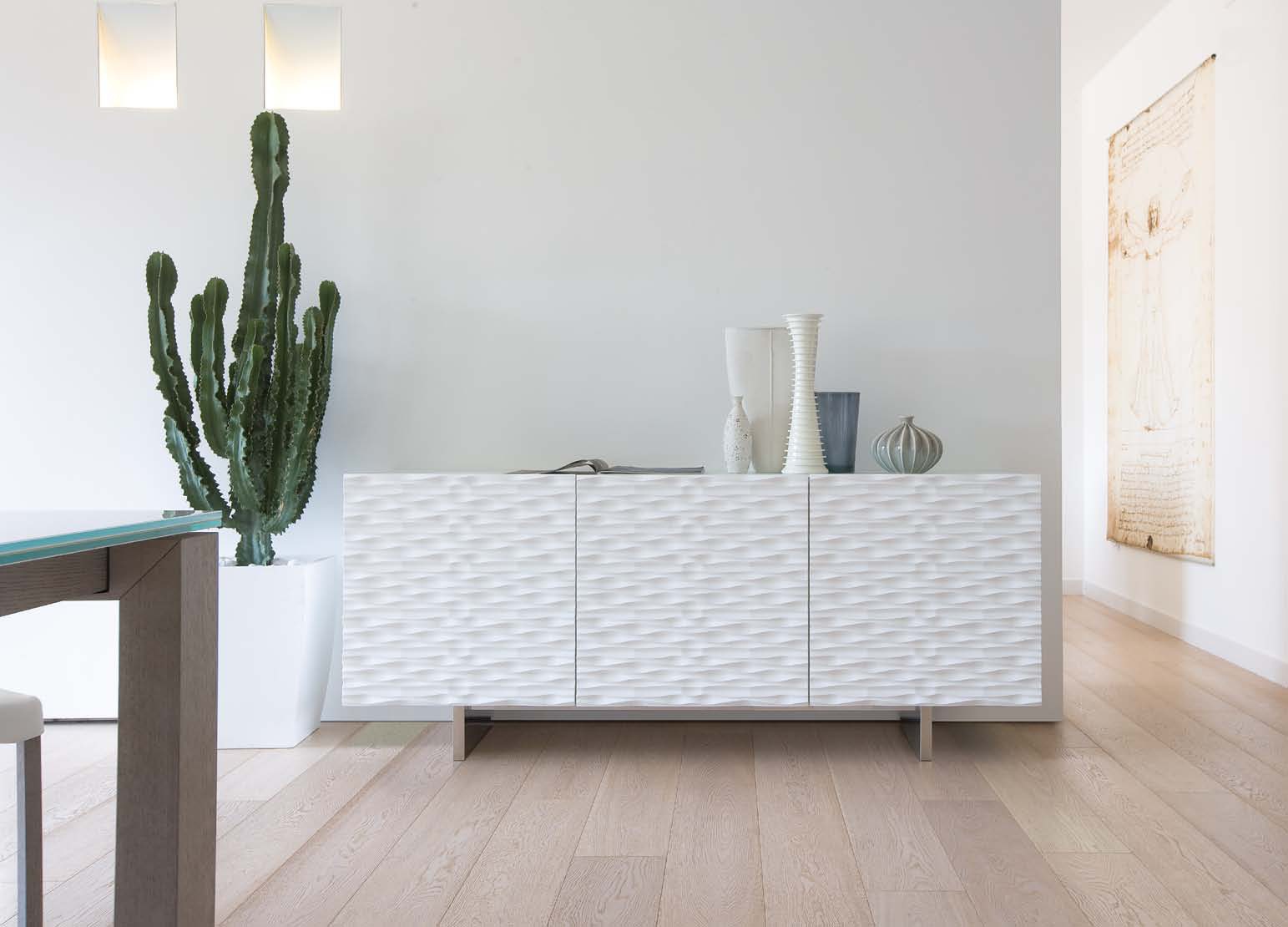 Pedestal Aura from the Italian producer Antonello Italia. The model is made from natural wood with fluted surface of front panels that serves as a decoration of the product. Metal legs with chrome finish. The modern design. Color in stock.