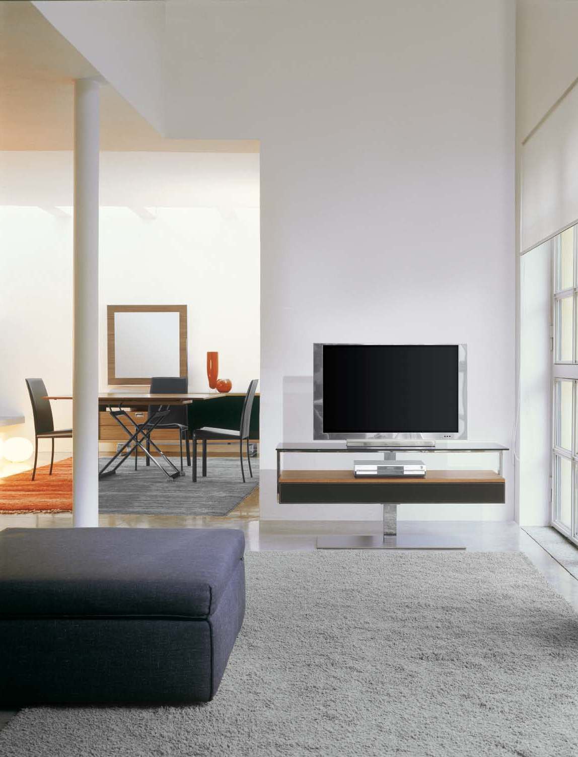 Curbstone under the TV Bit from the Italian producer Antonello Italia. The case is made of natural wood, frame chrome-plated steel, table top made of tempered glass. Colours in stock. The model will perfectly complement the modern style of your living room.