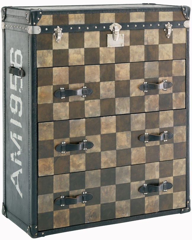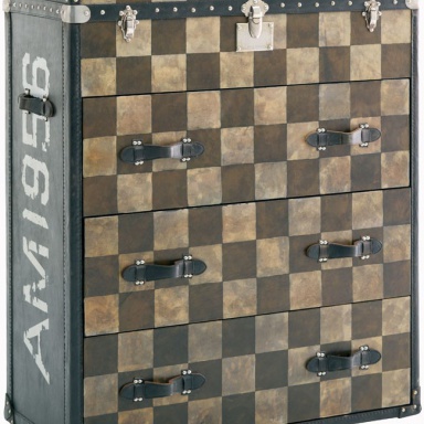The Chequered chest of drawers Chest Of Drawers from British producer Andrew Martin. Model with hinged lid. Material - solid wood. The metal fittings and leather. Compact and original design. Made in a modern style.
