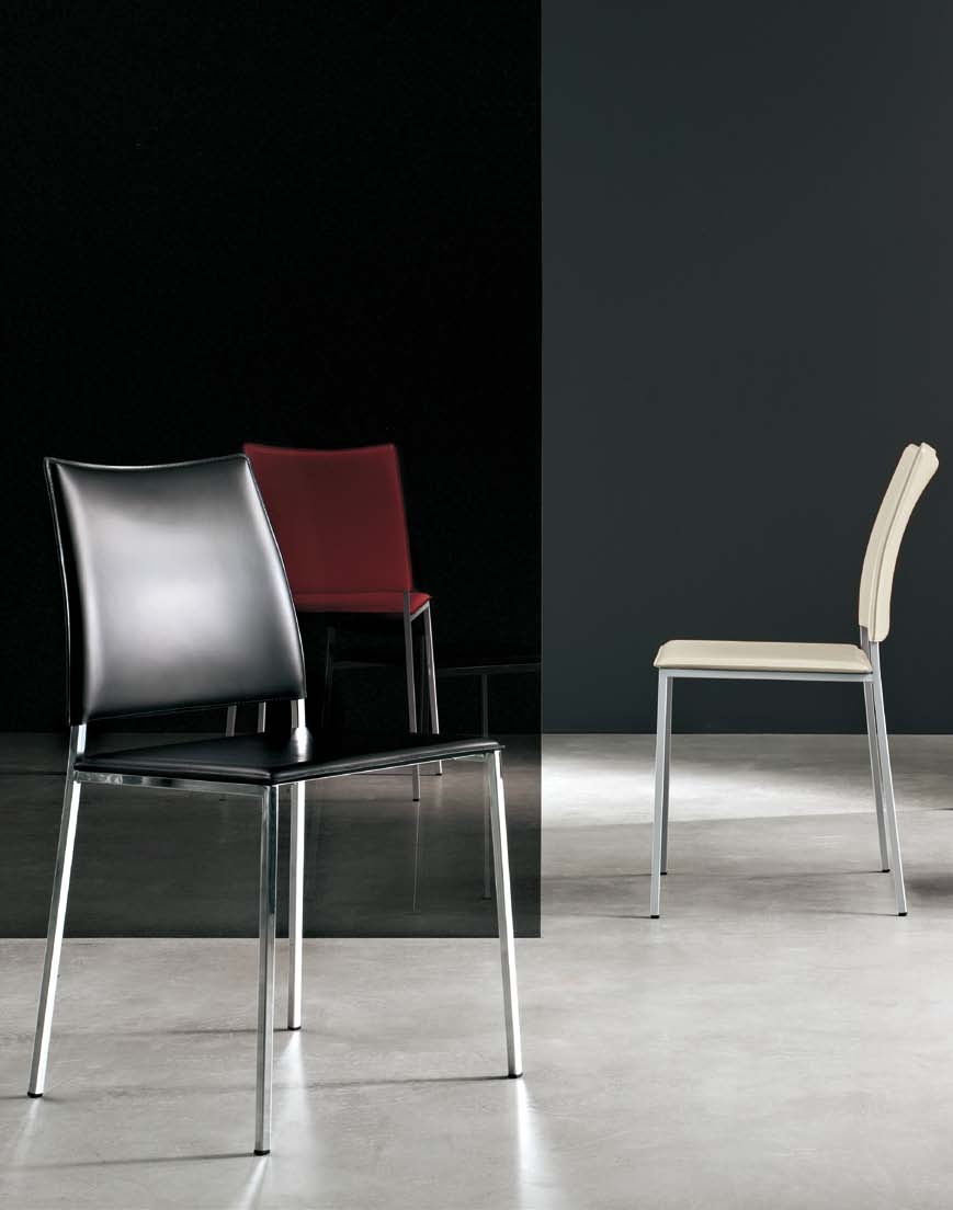 Desy chair from Italian producer Antonello Italia. The front frame and stainless steel legs. Seat and back upholstered in leather or textile. Colours in stock. Model of modern design.