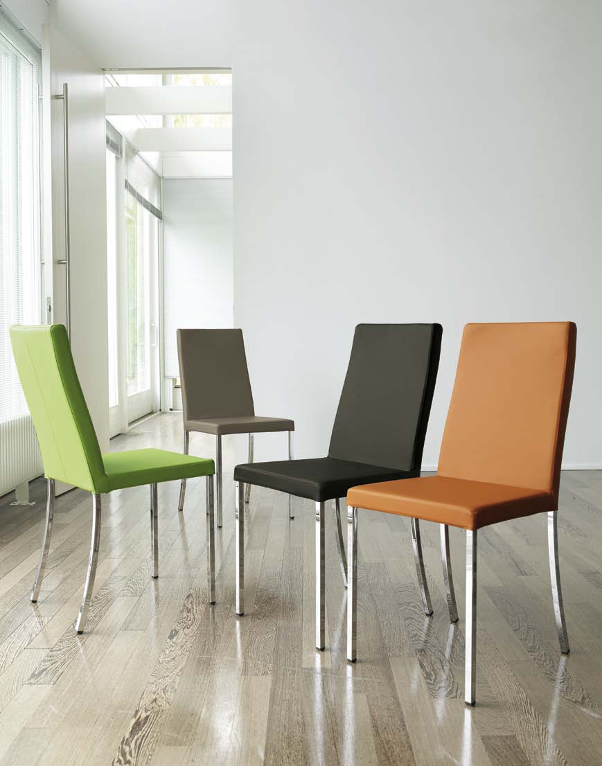 Chair Sue from Italian producer Antonello Italia. A model of contemporary design with upholstered seat and backrest. For upholstery, leather, imitation leather or textiles - catalogue of the manufacturer. The legs are made of stainless steel.