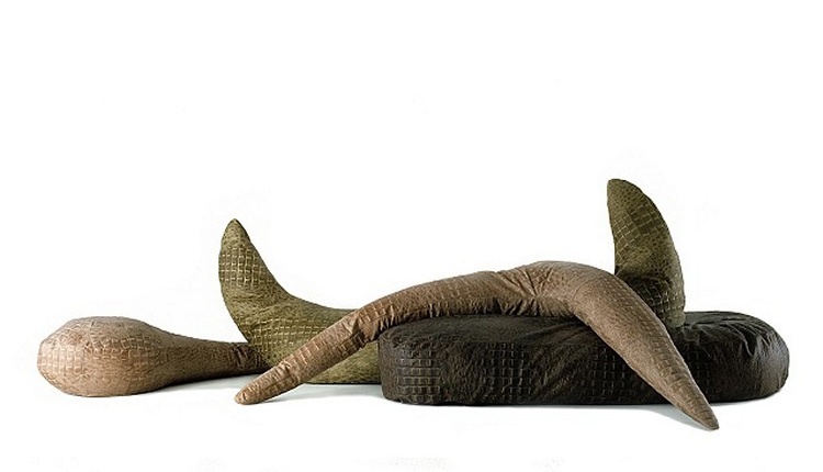 The design of the items in the collection – sensual and even a little frightening. Looks frighteningly like the crocodile hunter, who sneaks in the waters. Artists with exclusive upholstery managed to convey even the coolness and humidity, which are low clouds over the Amazon or a thick morning dew. You will understand it, even without touching the surface.