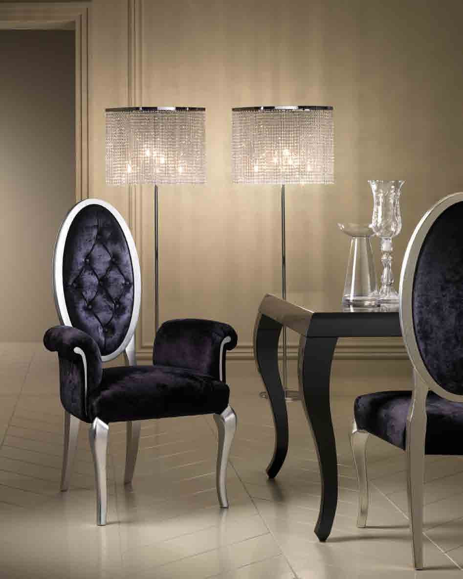 The Versaille chair from the Italian manufacturer DV Home. The frame is made from solid wood with carved frame. Upholstery - textiles with decorative stitch Capito. Colours in stock.