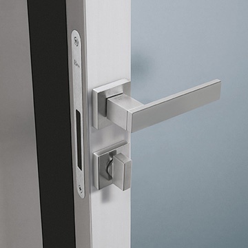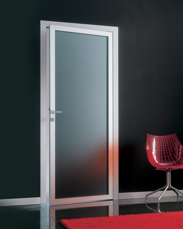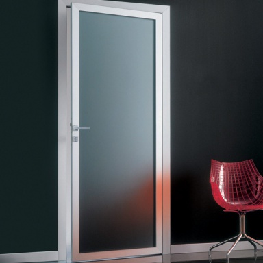 Hinged door Mood xl from the Italian manufacturer Res. Profile built-in wall made of stainless steel. The curtain is made of frosted glass. Comes with integrated lock. Is practical and compact.