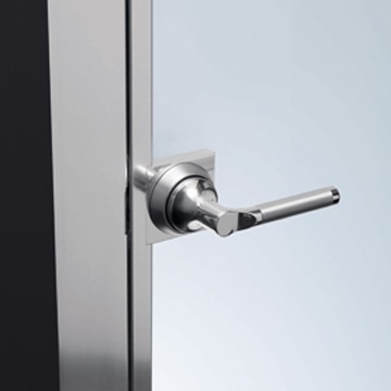 Interior door Luna from Italian manufacturer Res. The model is made in a modern style. The canvas is made of bent frosted glass. Frame and metal frame. Finish the catalog of the company. Built-in handle included.