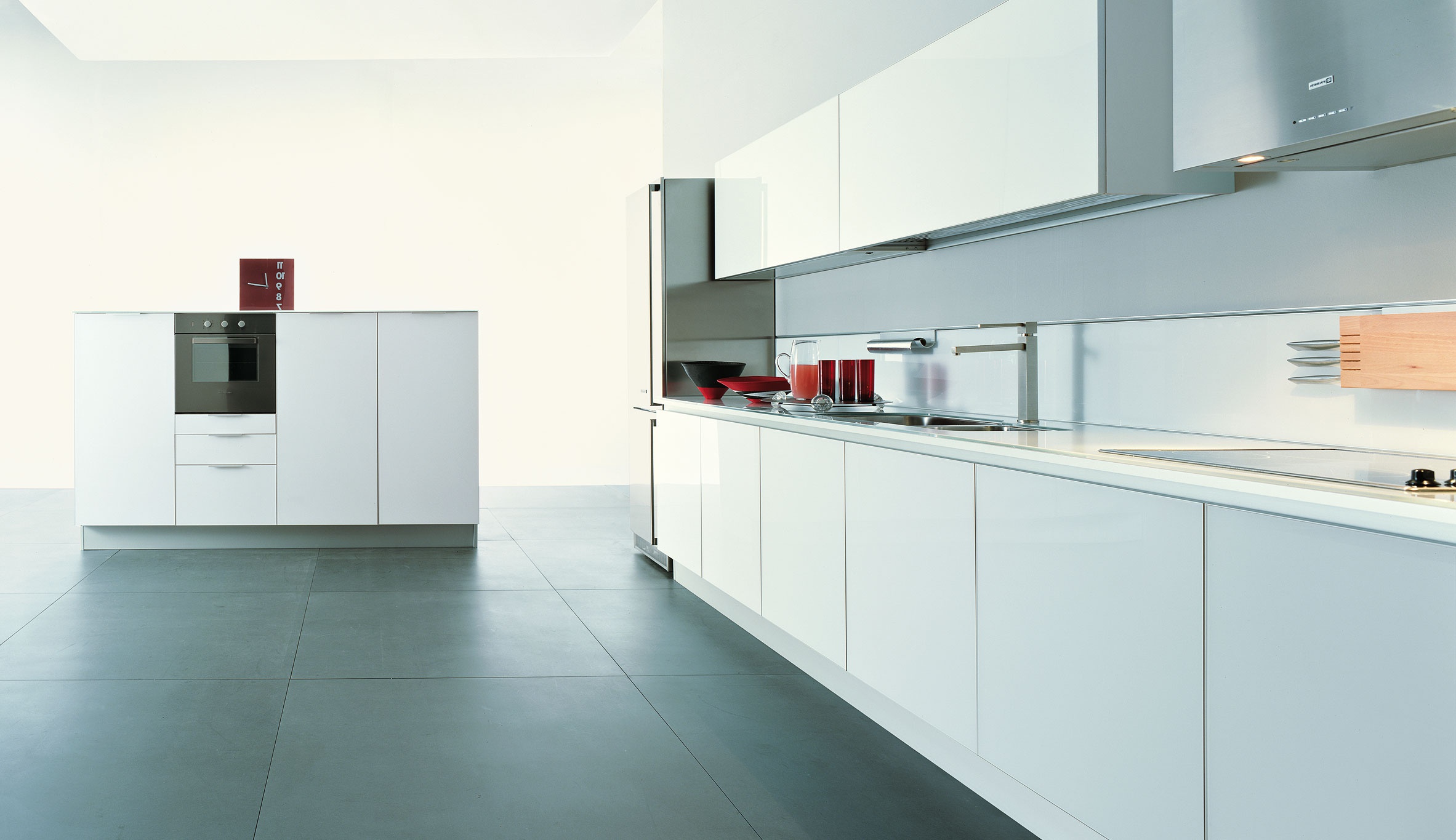 Kitchen (Suite kitchen) with table top in white tempered glass Luce, Cezar