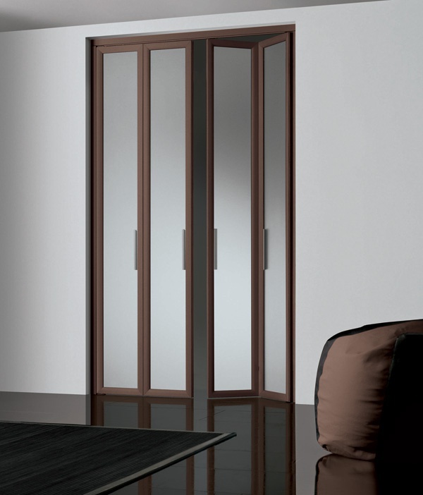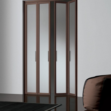 Interior partition Dorsia from the Italian manufacturer Res. Includes foldable sections. Profile of wood. Finish to be selected from a catalog company. Handles are metal. Canvas frosted glass is high quality.