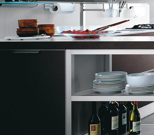 panel: veneer panel: oak frame: aluminum shelves: aluminum countertop: laminate the basis: MDF |