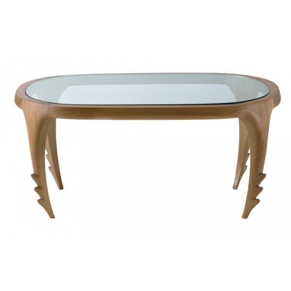 Coffee table from the collection of the Animalia of the Italian manufacturer Fratelli Boffi. Table made of solid walnut. The tabletop is made of transparent glass. There are two types of tables - round and oval. The model is executed in modern style.
