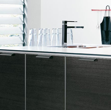 the facade: oak the facade: veneer frame: aluminum the edge of the countertop: aluminum the basis: MDF |