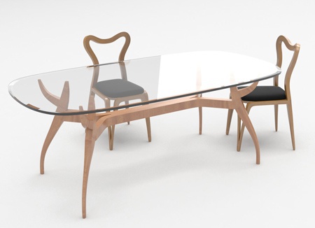 Dining table from the collection of the Animalia of the Italian manufacturer Fratelli Boffi. The table is made from solid walnut, the legs resemble animal horns. The tabletop is made of transparent glass. The shape of the table - oval. The model is executed in modern style.