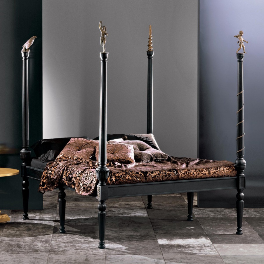 Bed Italian manufacturer Fratelli Boffi. The bed is made from solid bog oak. Has four columns for the canopy. The model combines a mixture of styles, modern and classic.