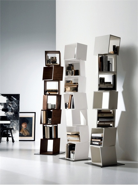 Rack Rubik from the Italian manufacturer EmmeBi. The material is solid wood. The product of sustainable cubes with beveled fronts. Gives the impression of unreliability and shaky design. Unusual model for living room in modern style. Colors: white, red.