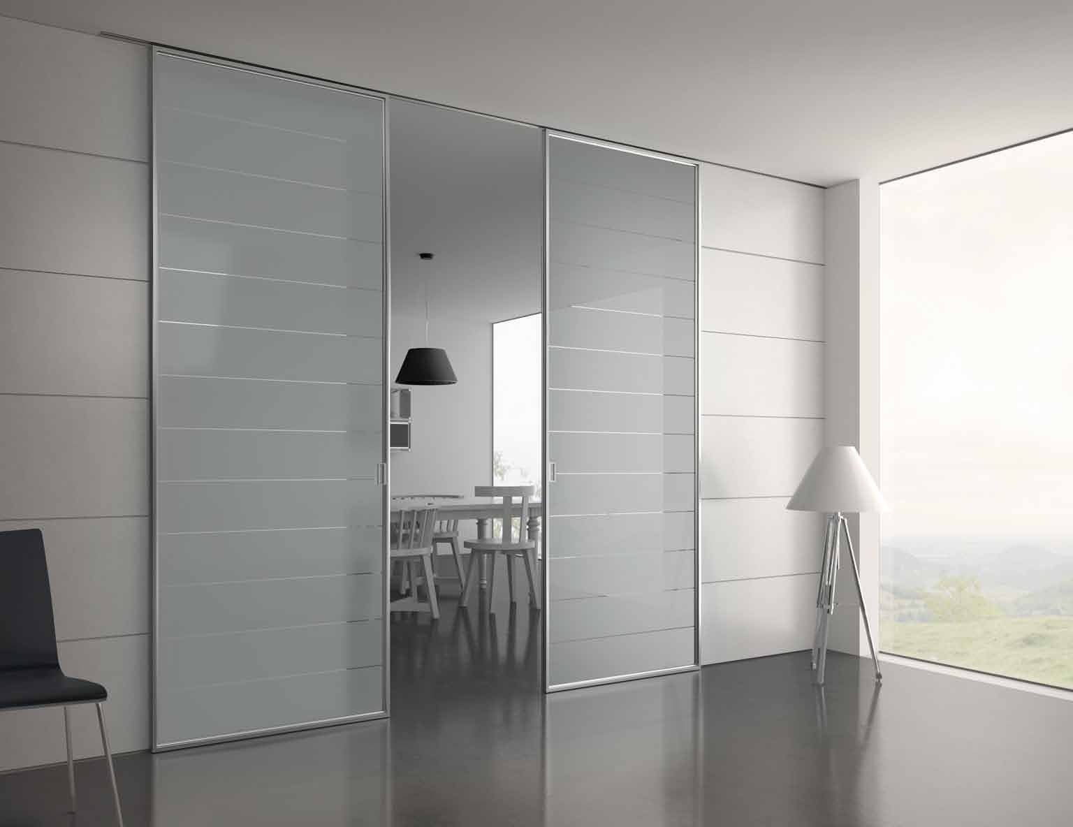 Sliding door collection Next (2 doors) from the Italian manufacturer Astor Mobili. Doors with the rail flush mounting to the ceiling. Anodized aluminium frame, glass tempered with "ribbed" decorative elements.