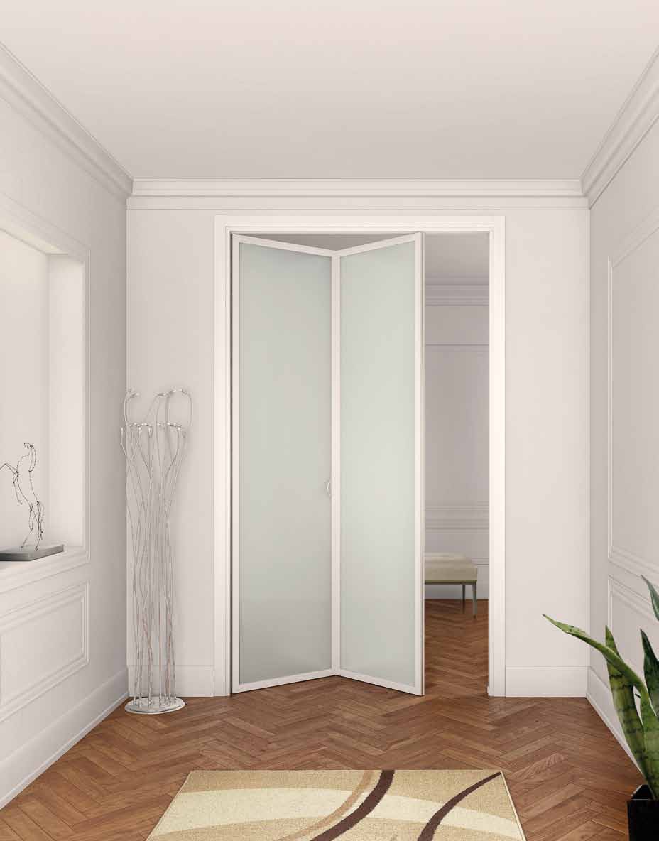 Folding door (2 sheets). Xila from the Italian manufacturer Astor Mobili. Anodized aluminum frame, frame - MDF (white lacquer). Glass in stock.