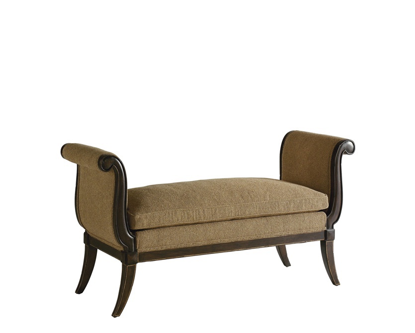 The Empire banquette Bench from an American manufacturer Baker. The frame is made from solid cherry. The seat is covered with a textile from the assortment of campaigns. The model will decorate interior in art Deco style. Colours in stock.