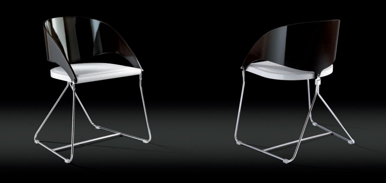 Chair Dueasy B, from the Italian manufacturer Airnova Italia. The frame is made from metal tubes. The seat and backrest is wood of contrasting colors: white and black. The back is rounded and attaches at four Mets. The style is modern.