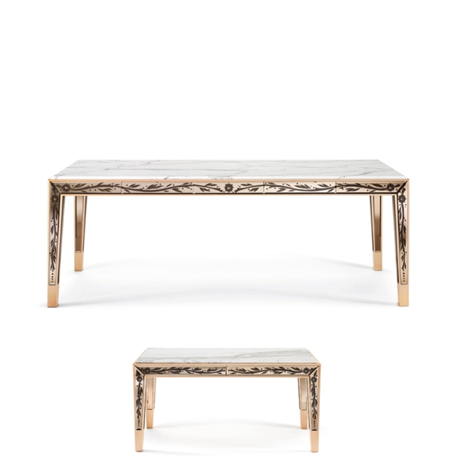 Coffee table from the Italian manufacturer Arte Veneziana. Table of rectangular form on small feet. With ceramic mural. Made in the classic style.