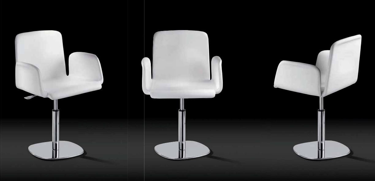 Chair Gina, from the Italian manufacturer Airnova Italia. The frame is made of metal. Upholstered in leather from the company portfolio. The model is complemented with soft armrests. The chair is made with backlash-a system for adjusting the height. Color - white.