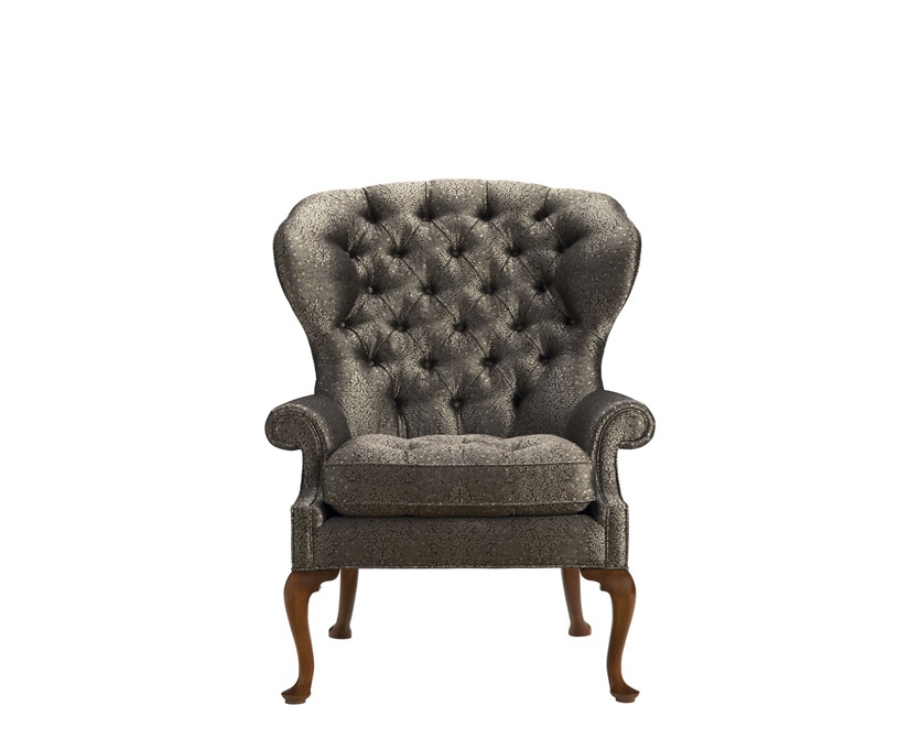 A George II Wing chair from the American manufacturer Baker. The model is widely spread in England 1750 the Frame is made from mahogany wood legs - carved, filler - foam, upholstery - textiles with stitch - Capito. The product is designed for interior with historical design. Color in stock.