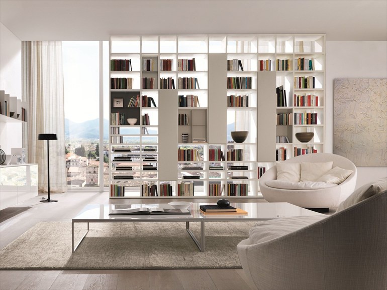 Modular storage system for books from the Italian manufacturer Zalf. The frame is made from solid wood, the surface is treated with varnish from the range of the factory. Great selection for modern interiors. Colours in stock.