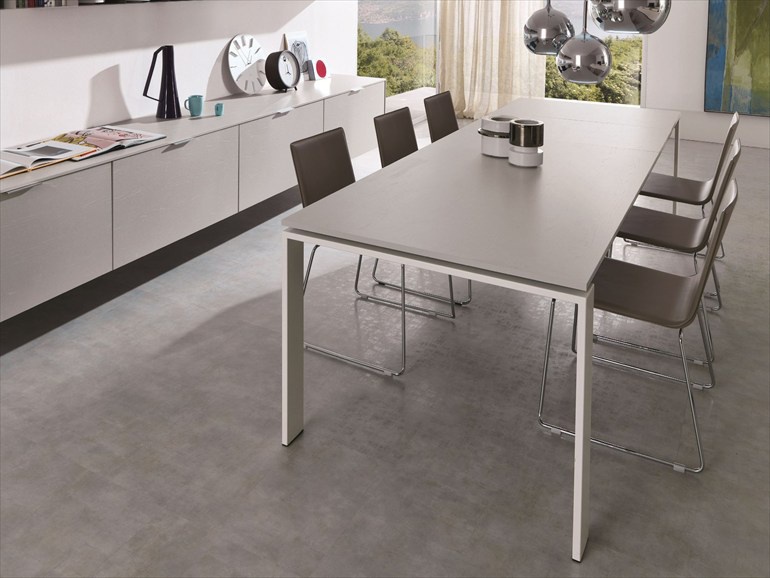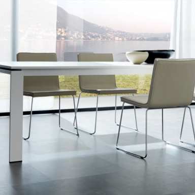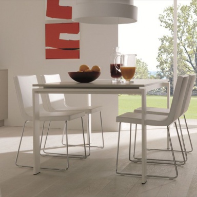 Dining table from the Italian manufacturer Zalf. Top is made of melamine. The surface is treated with varnish from the range of the factory. The model is rectangular. A good choice for modern interiors. Product color white.