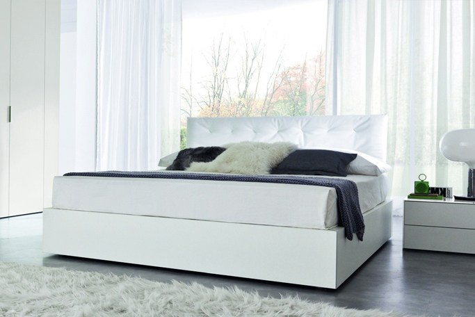 Double bed Box Five from the Italian manufacturer Zalf. The frame is made from solid oak. Finish options range from the factory. The headboard is decorated with stitch-Capito. A chic choice for the bedroom in modern style. Product color white.