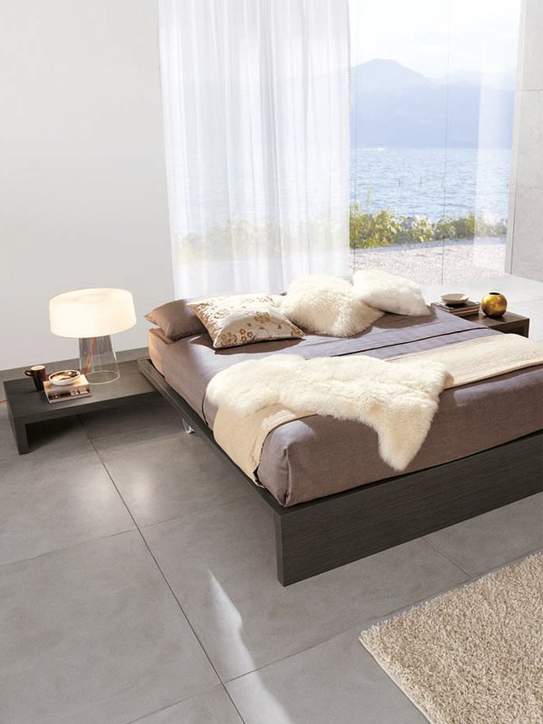 Double bed from Italian manufacturer Zalf. The frame is made from solid wood, the surface is treated with varnish from the range of the factory. The set includes a bench which is used as a bedside table. Design in modern style. Colours in stock.