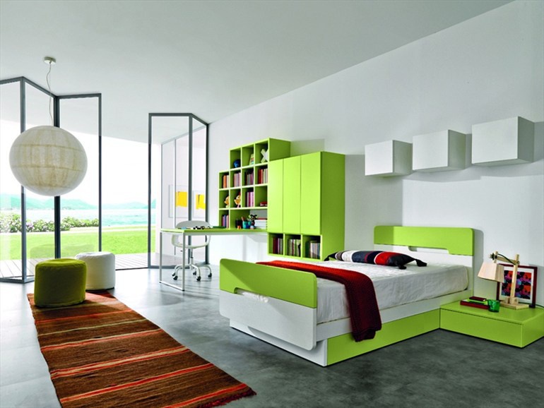 Set for kids room from Italian manufacturer Zalf. The set includes: single bed with storage box, module for books, a bedside Cabinet, Desk and closet. The furniture is made of solid wood in the finishing varnish from the range of the factory. The style is modern. Colors: white, light green.
