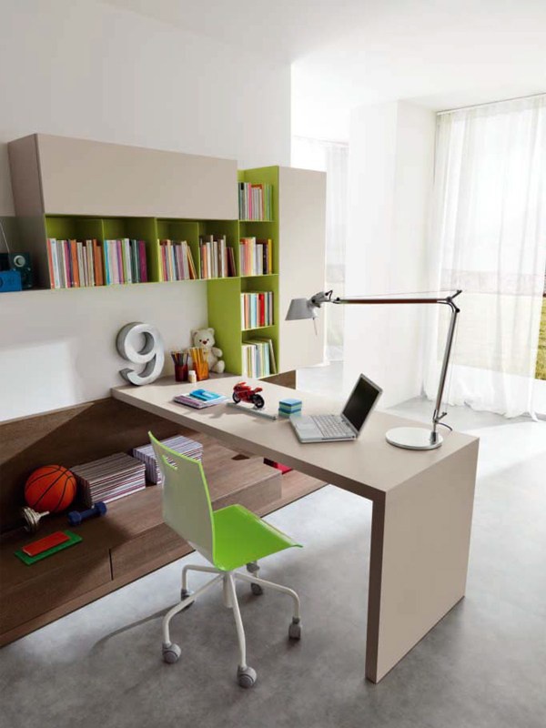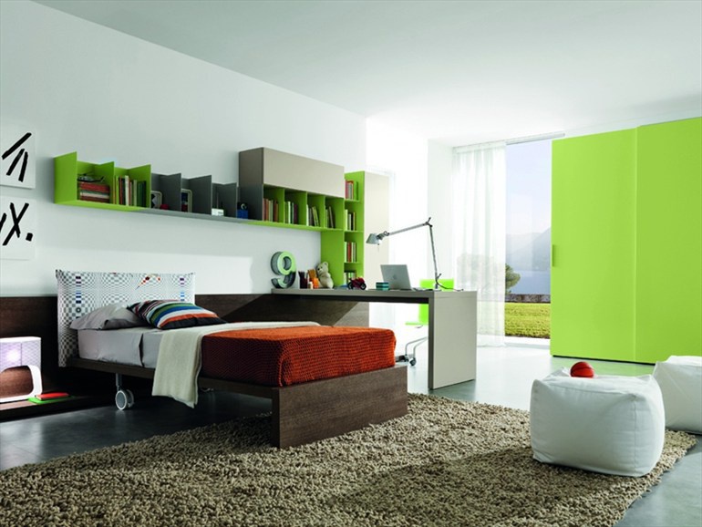 Set for kids room from Italian manufacturer Zalf. Design in modern style. The set includes: single bed with upholstered headboard, wardrobe with sliding doors, a Desk and a wall for books. The furniture is made of solid wood in the finishing varnish from the range of the factory. Colours in stock.