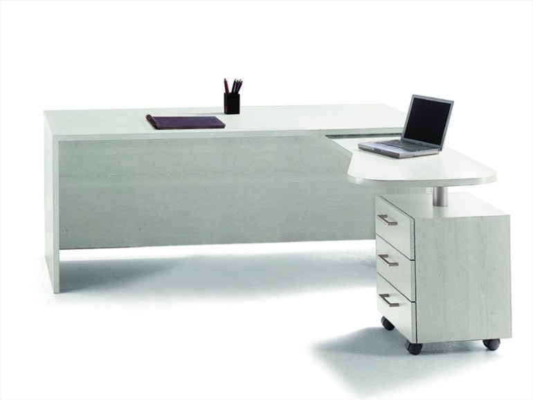 Writing/computer Desk from Monopoli Zalf Italian manufacturer. The frame is made from solid wood. The model is equipped with a mobile pedestal with three drawers. Design in modern style. Colours in stock.