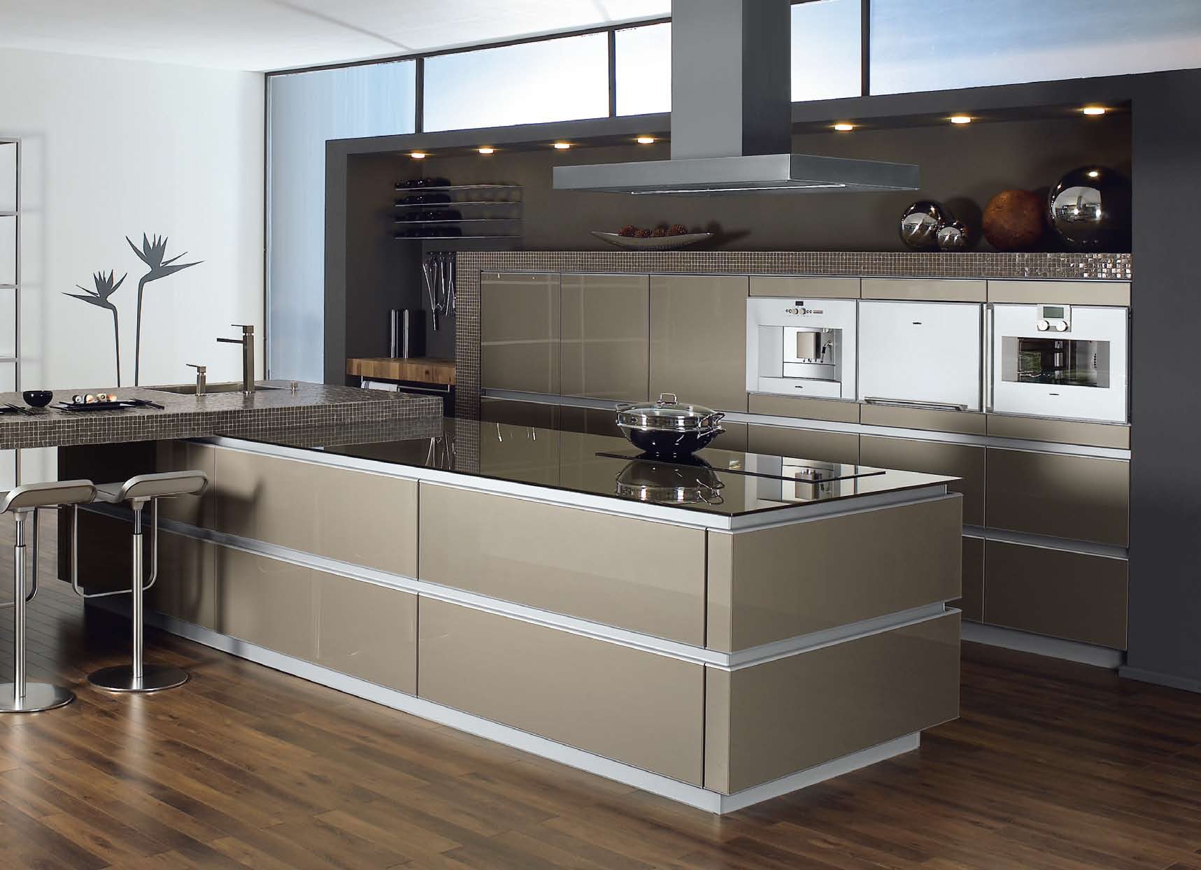 Set for the kitchen from the German manufacturer Zeyko. The furniture is made of solid wood. Finish options range from the factory. Worktop - glass. Work area - stone. Headsets are equipped with built-in lighting. Design in the art Nouveau style. Colours in stock.