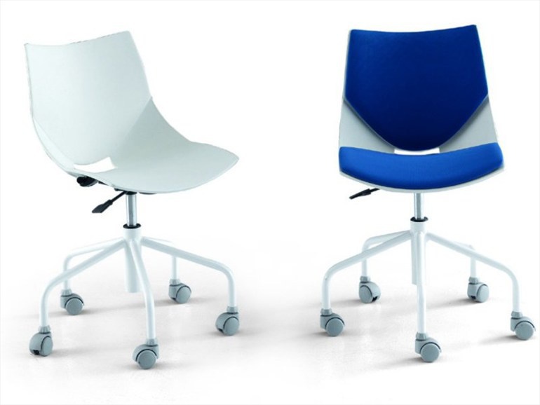 Chair on wheels Poli, from Italian Zalf the manufacturer. The frame is made of painted steel. The model is equipped with a mechanism for adjusting the height of the seat. A great choice for modern interiors. Colors: white, blue, blue.