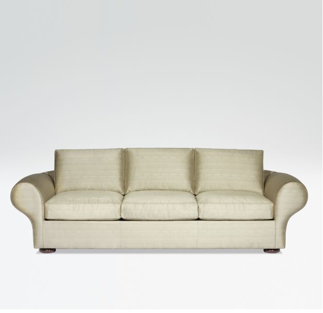 Three seater sofa Diana, from the Italian manufacturer Armani Casa. The frame is made from solid wood. Upholstery - textiles from the company portfolio. Filler - polyurethane foam. The backrest is made in the form of three soft pillows. The armrests are rejected ago. Feet round, made of wood in lacquered finish. Colors - beige.