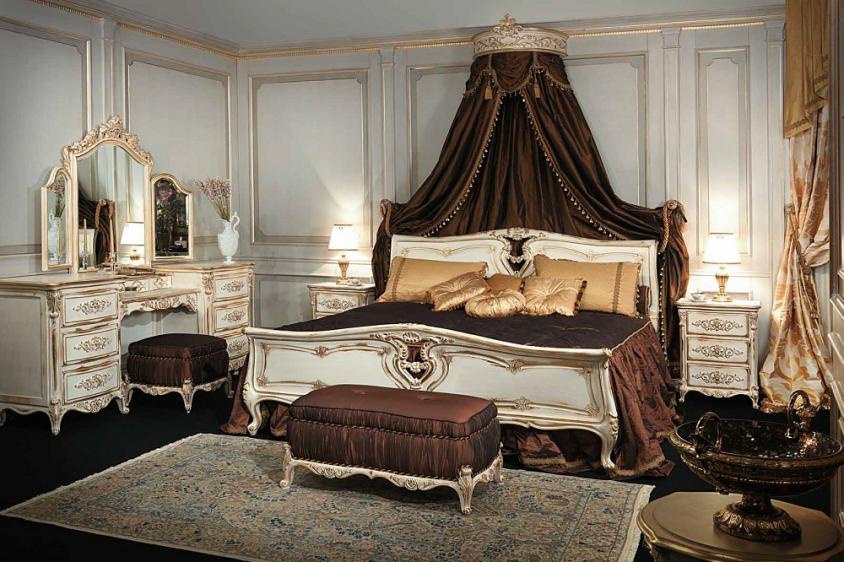 Italian furniture for bedroom production of Vimercati. Includes: double bed, two bedside tables, dressing table and stool. The furniture is made of natural wood. The surface is treated with lacquer. Finish options: gold plated/carved/antique/handmade. Upholstery - textiles from the assortment. Elegant kitchen set in classical style. Colors: white, brown.