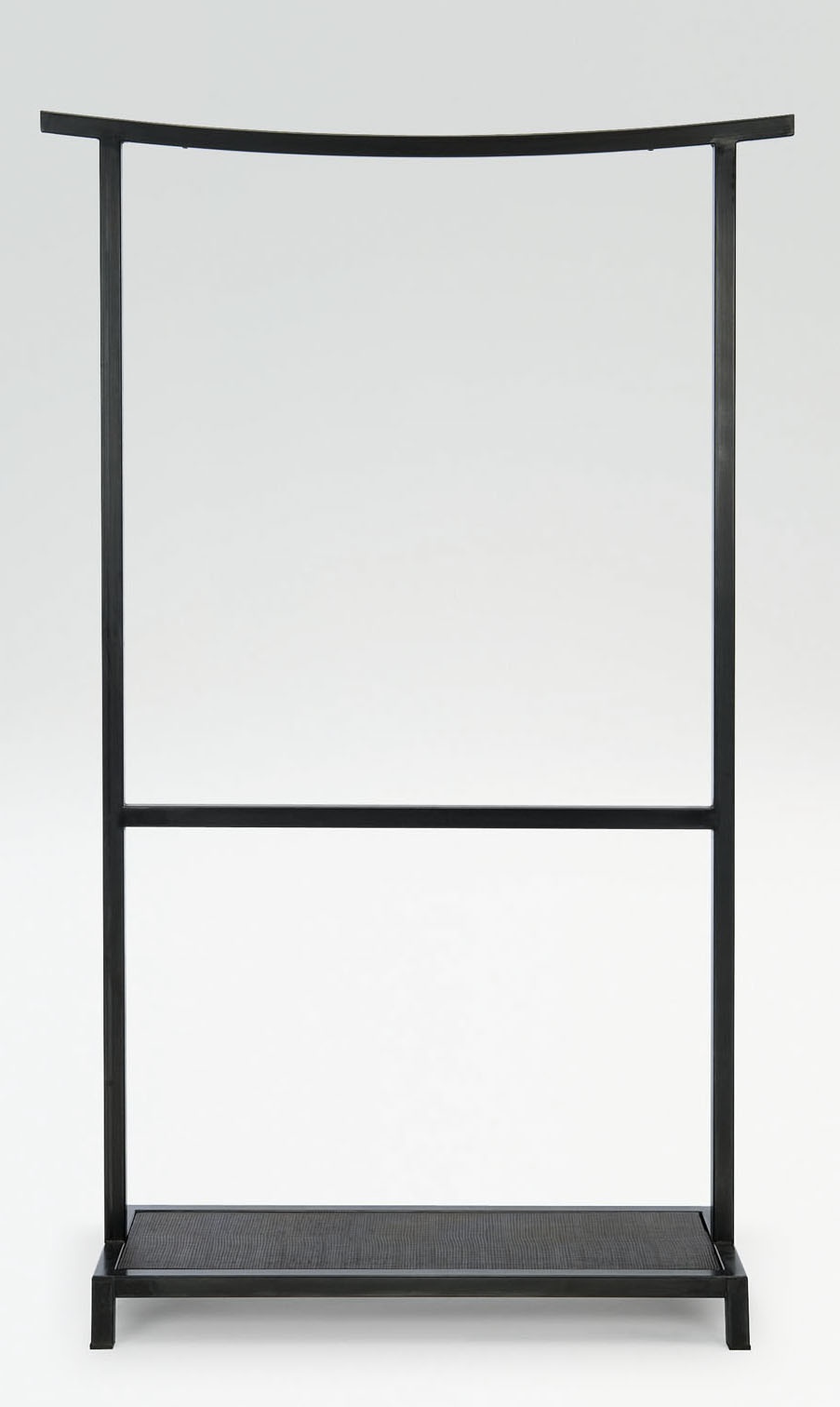 Clothes hanger Tao, from the Italian manufacturer Armani Casa. The model is made of iron, with the base covered in embossed leather or cloth with metal thread, gray corrugation. The style is modern. Color from manufacturer's catalogue.