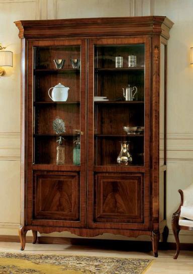 Showcase from Italian manufacturer Vimercati. The case is made of natural wood. The upper part of the doors and side panels - clear glass. Legs-Cabriole. This model will decorate the interior in a classic style. Product color natural wood.