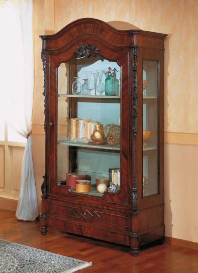 Showcase from Italian manufacturer Vimercati. The frame is made from solid wood side panels in transparent glass. The model is decorated with carved decoration. Design in the classic style. Product color natural wood.